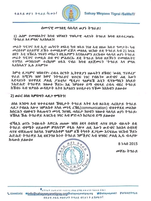 ዕስለ ኣንበጣ ኣብ ዝተተፈላለዩ ኸባቢታት ትግራይ ኣትዩ ኣብ ዘራእቲ ሓረስታይ ትግራይ ሓደጋ የብፅሕ ኣሎ። ዝምልከቶ ኣካል መገዲ ረኽቢ (communication) ብዝተዋደደ መልክዑ ክሰርሕን ብፅፉፍን ቅልጡፍን መገዲ ንህዝቢ ሓበሬታ ክህብን ዝፅውዕ ሳልሳይ ወያነ ትግራይ፡ ዝኸኣለ ኹሉ ትግራዋይ ኣዝርእቲ ገባር ኣብ ምድሓን ክረባረብ ድማ ይፅውዕ።