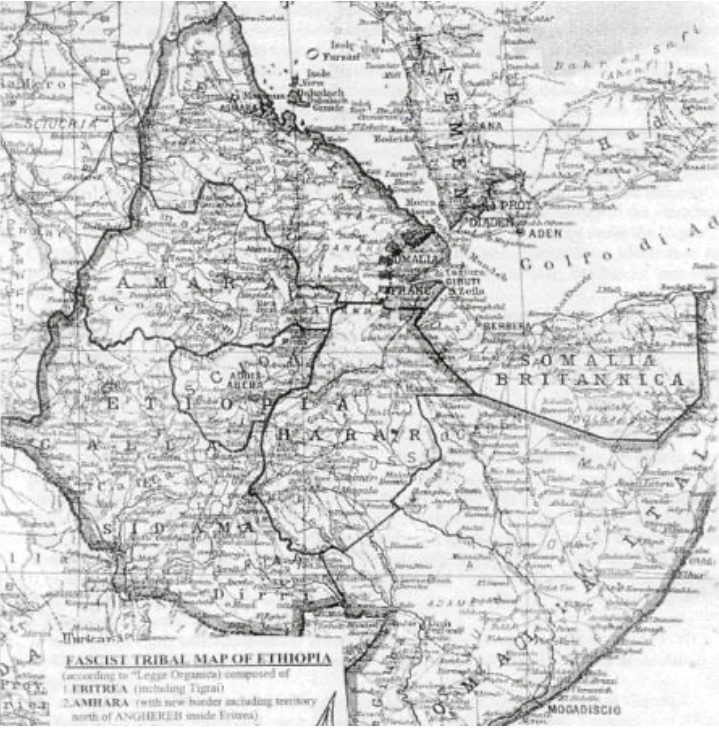 As Del Boca says, “What immediately appears evident, from an analysis of the territorial division of these governments (done with excessive haste), is the punitive concept which has inspired the legislator.” The Ethiopian Empire has been dismembered, recomposed on a predominantly tribal basis, and rendered unrecognizable.” The Fascist propagandist Professor Raffaele di Lauro wrote: “The choice of the capital of each tribal government and the border demarcation of the five component territories have been decided following a clear political criterion, that is to say, consideration of political opportunity and verification of an unfailing positive result. The legislator has made everything possible to keep strictly to the principle of uniting under one government people of the same linguistic, ethnic, and historical identity.”
